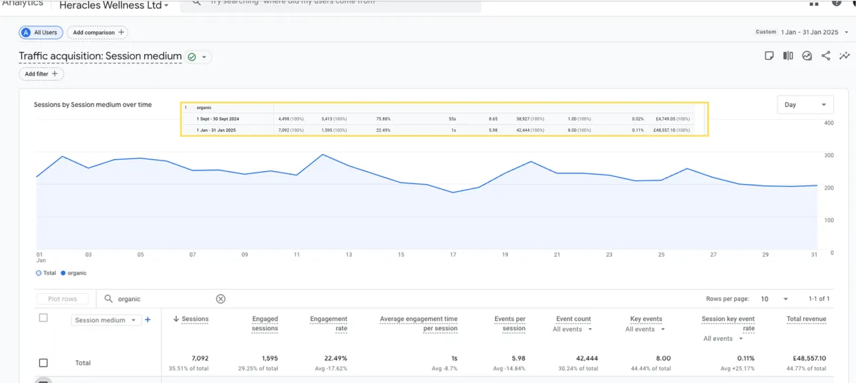 Doubled their organic traffic in just 3 weeks with site structure fixes. Turned a steep downtrend into a growth trajectory, jumping from 2.7K to 4.9K sessions and ranking for 822 new keywords. All through strategic technical improvements we implemented.