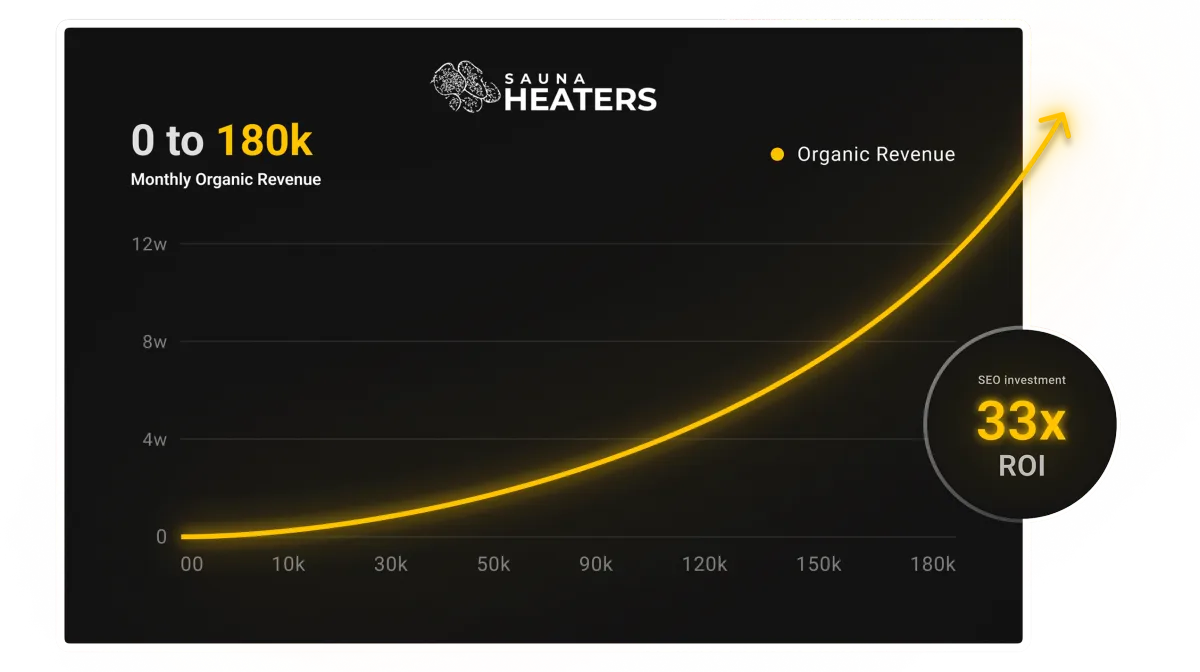 Scaled from $0 to $180K/month in organic revenue in just 16 months. Generated over $1M in total organic sales while paying only $3K/month. That's a 33x ROI on their SEO investment.